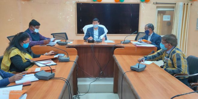 बचत भवन सभागार में स्थानीय निकाय 15वें वित्त आयोग की बैठक करते हुए डीएम व नगर पालिका अध्यक्ष