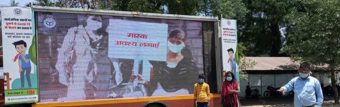 दो गज दूरी मास्क है जरूरी का पालन करे तथा 104 हेल्पलाइन नम्बर पर कोरोना सम्बन्धित समस्याओं का समाधान करवाये। यह जानकारियां व सजीव प्रसारण के माध्यम से कलेक्ट्रेट व पुलिस अधीक्षक कार्यालय के निकट व डिग्री कालेज, चैराहा, शिवगढ़, बछरावा, महराजगंज, सरेनी आदि तहसीलो व दूरदराज क्षेत्रो में उत्तर प्रदेश सरकार व सूचना एवं जनसम्पर्क विभाग द्वारा जनपद में कोविड-19 संक्रमण की दूसरी लहर से बचाव व जागरूकता के लिए एलईडी वैन के माध्यम से आमजनमानस को दिखाया जा रहा है।