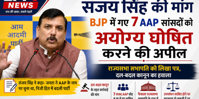 संजय सिंह की बड़ी मांग: BJP में गए 7 AAP सांसदों को अयोग्य घोषित करने की अपील